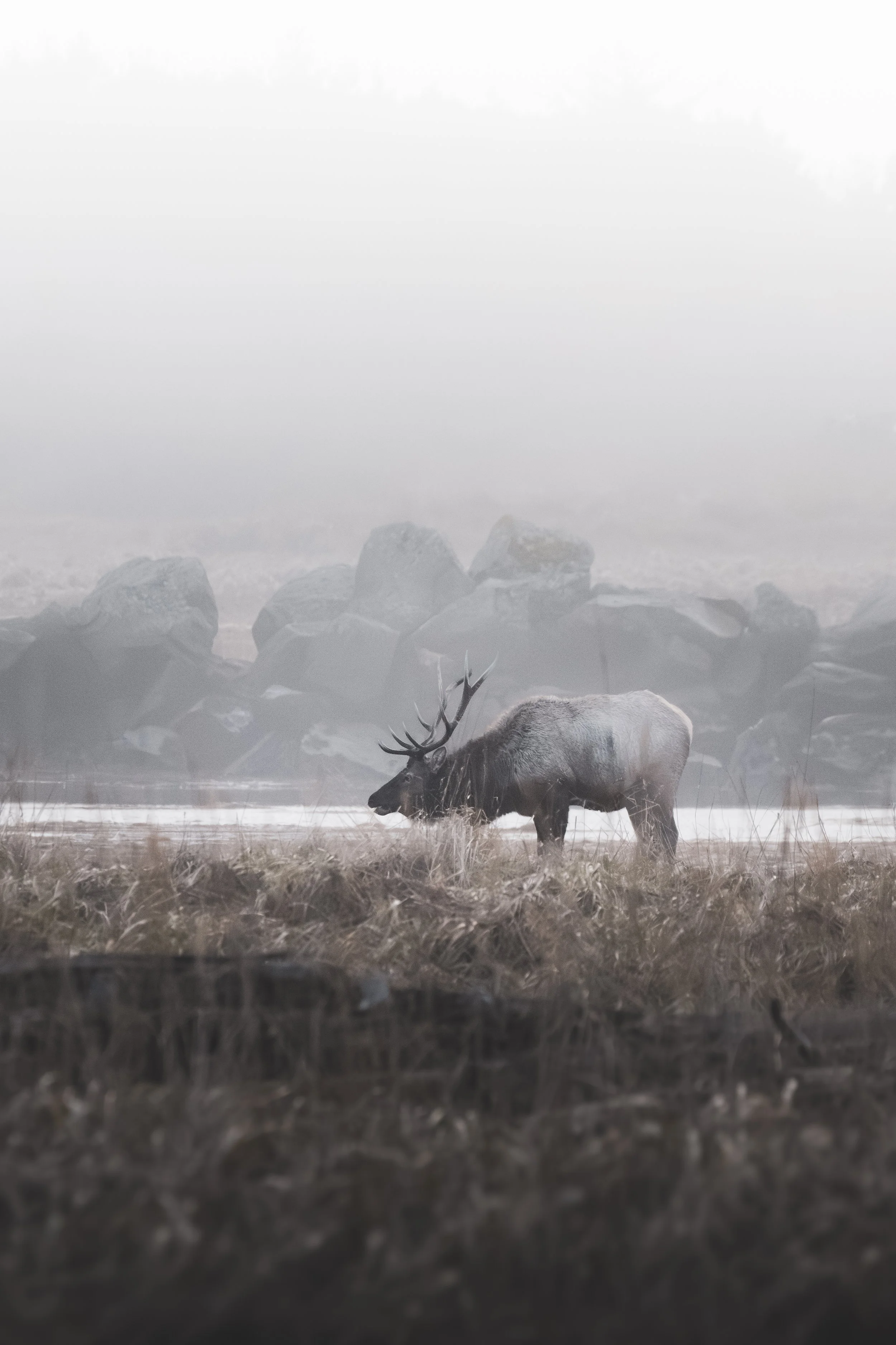 I found a place to park, roughly where I thought would be a good place to cut through the forest. Walking into this forest, there were clear paths that cut off in various directions. Paths that were certainly made from the elk, so I followed these towards the open field they were in. There was not much forest between the road and the field, it took me roughly 15 minutes to get through it. Once I got through, I encountered tall grass that blocked any view but still had paths from the elk, so I trudged through until I found a small hill. Upon getting to the top of this hill, there they were, there were two elk.. Walking away from me out towards the open field, grazing slowly as they walked. I quickly unclipped my camera and framed a couple quick shots (next two photos), which I actually really like. The atmosphere of the images with the silhouette of the elk along with the subtle fog off in the distance, all made for decent photos.