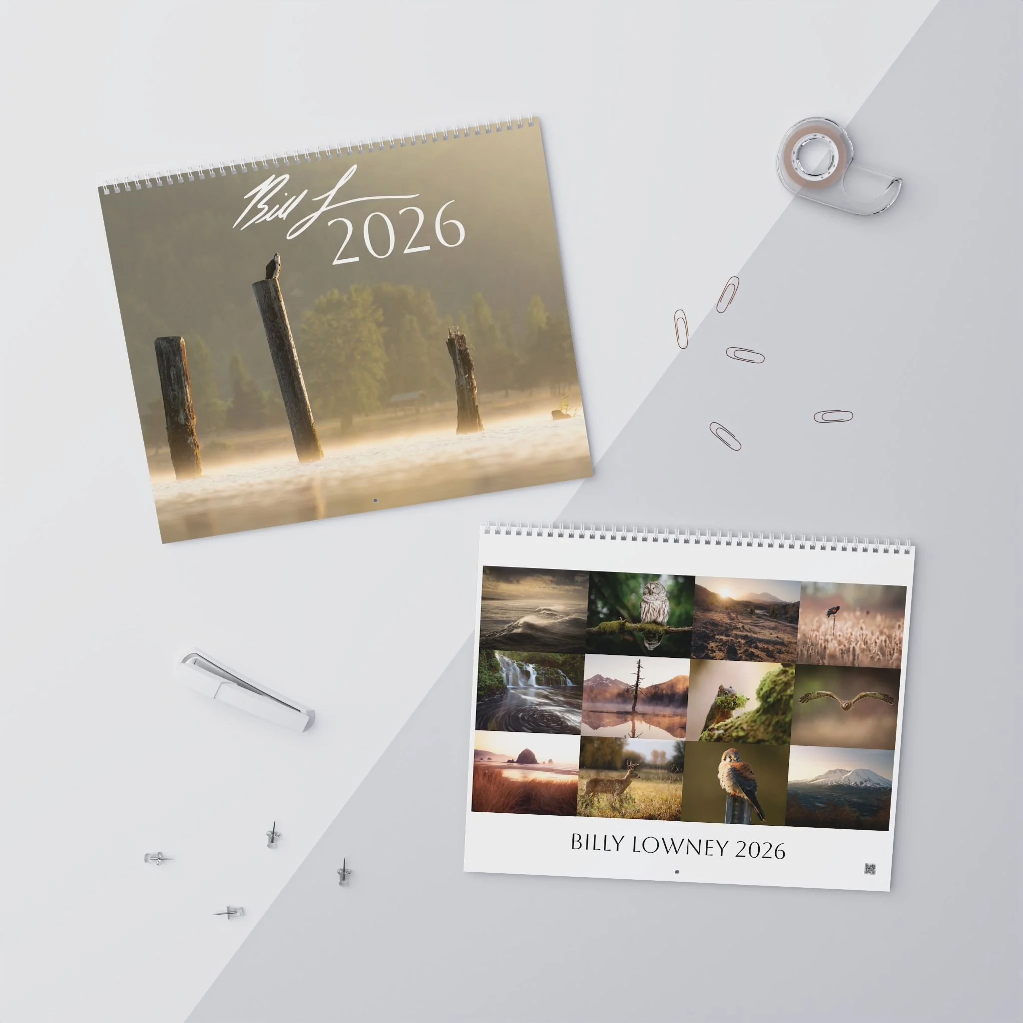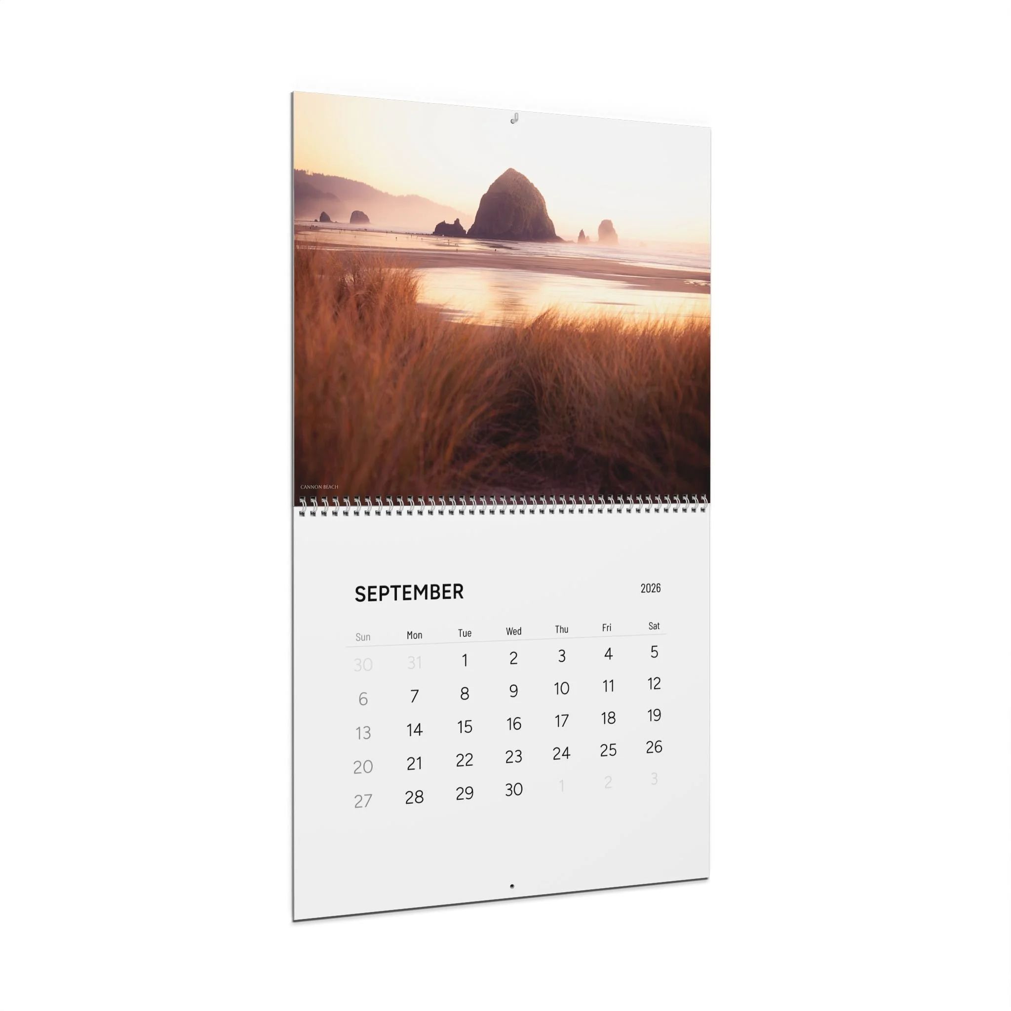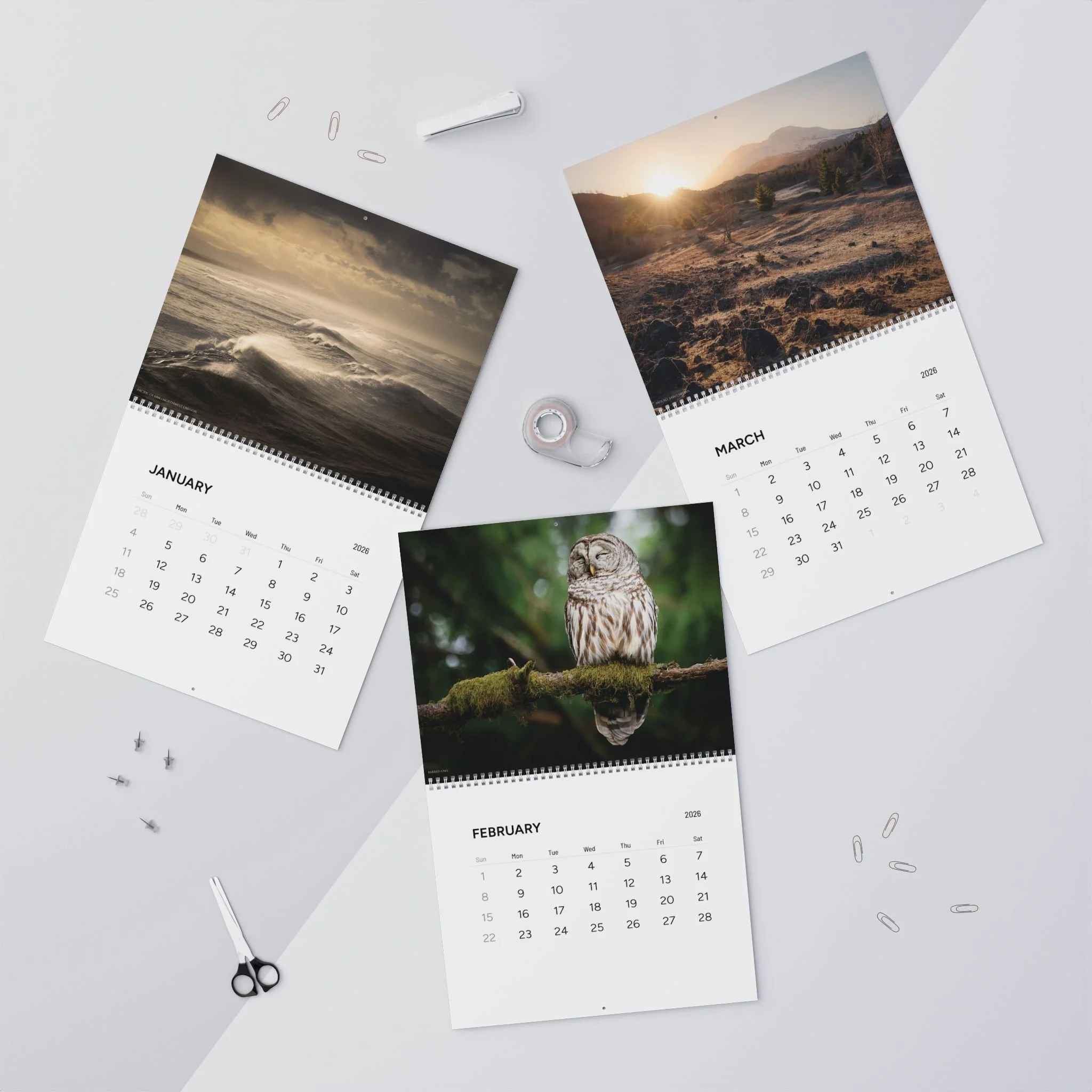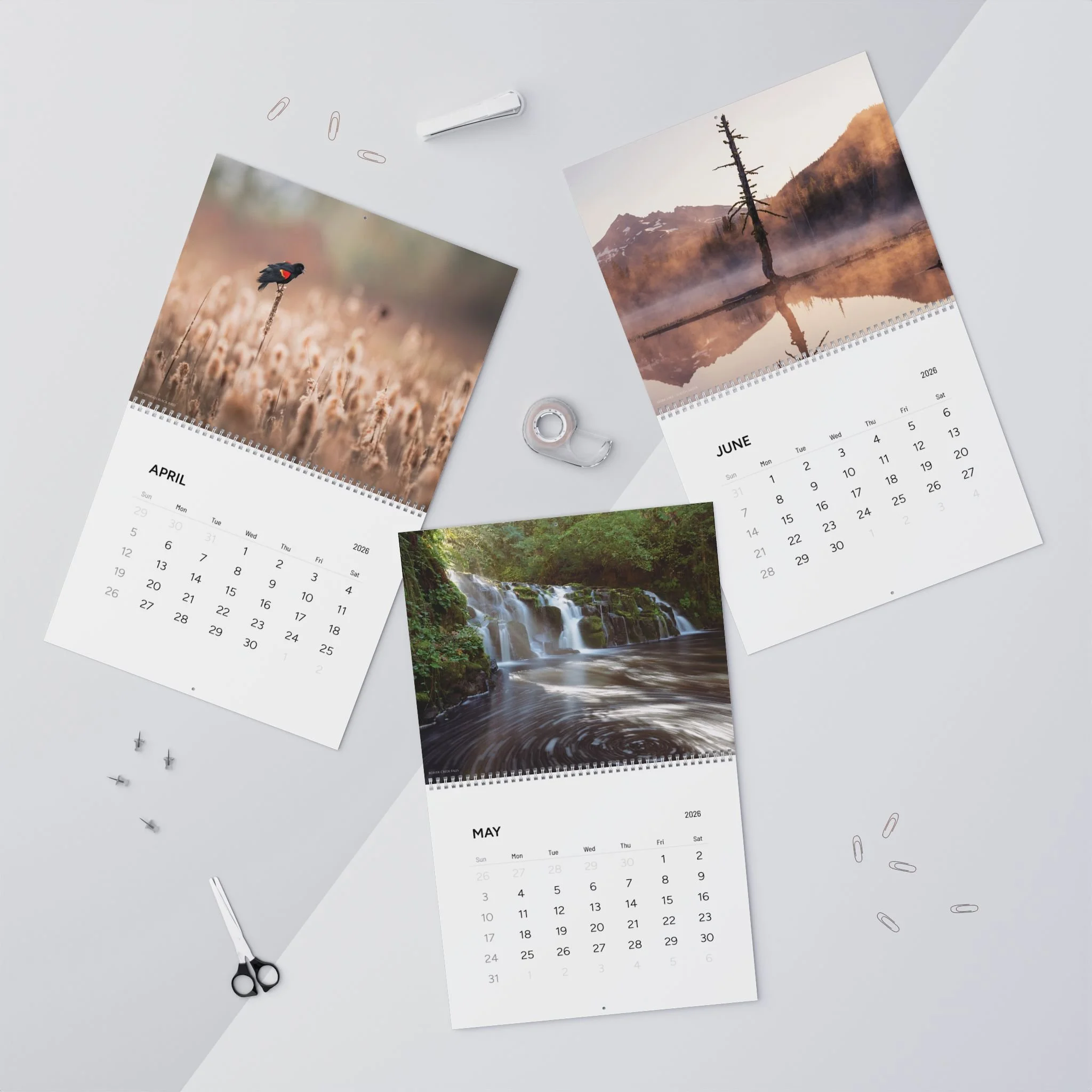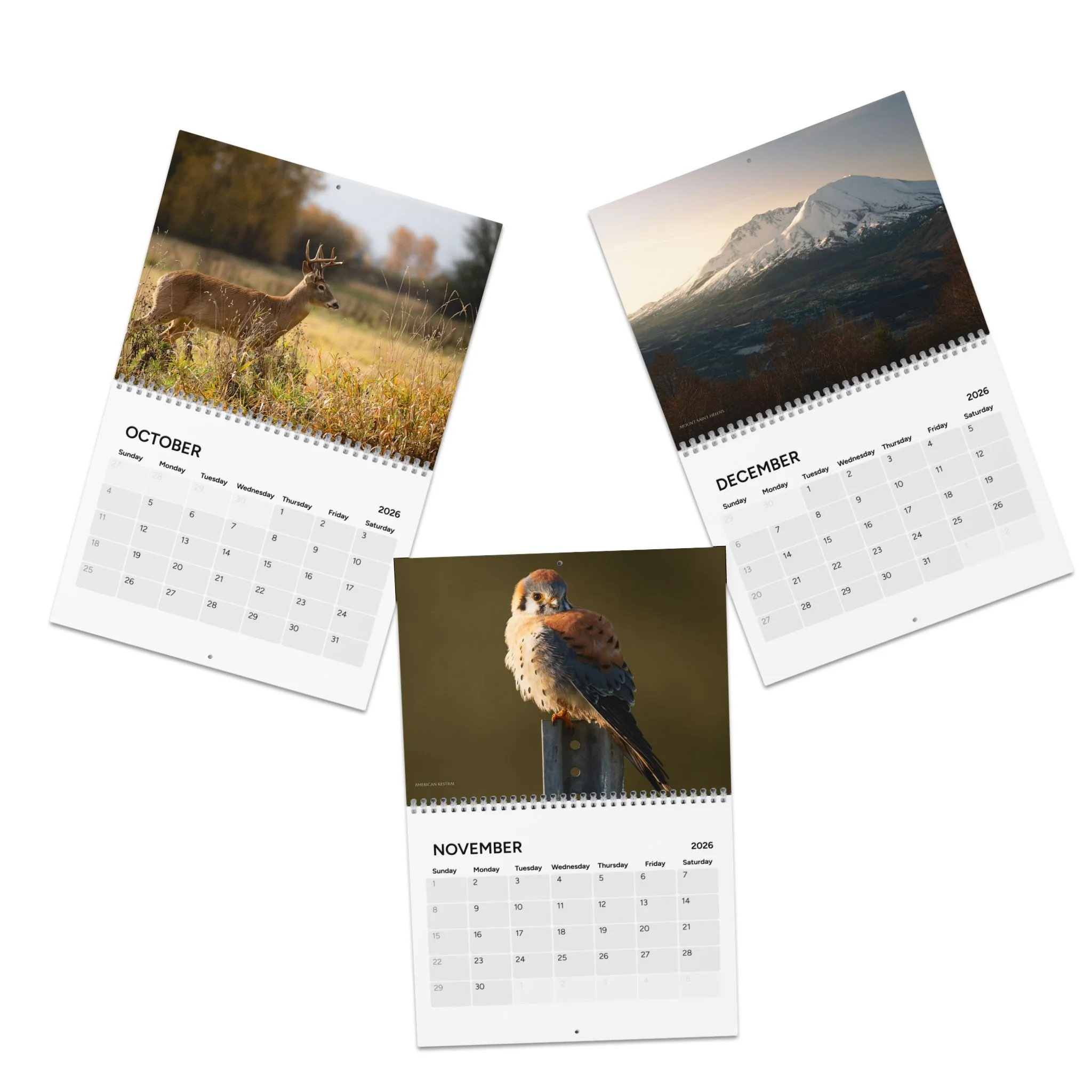 This here is a 14" x 11.5" 2026 wall calendar on fine quality glossy paper with photos taken by me throughout this past year. In this calendar you will find a mix of sprawling landscapes, intense seascapes and beautiful wildlife.